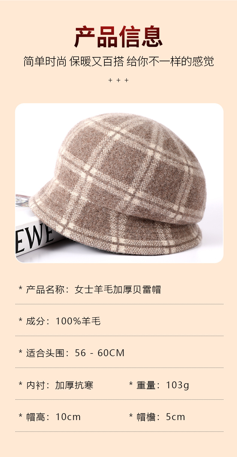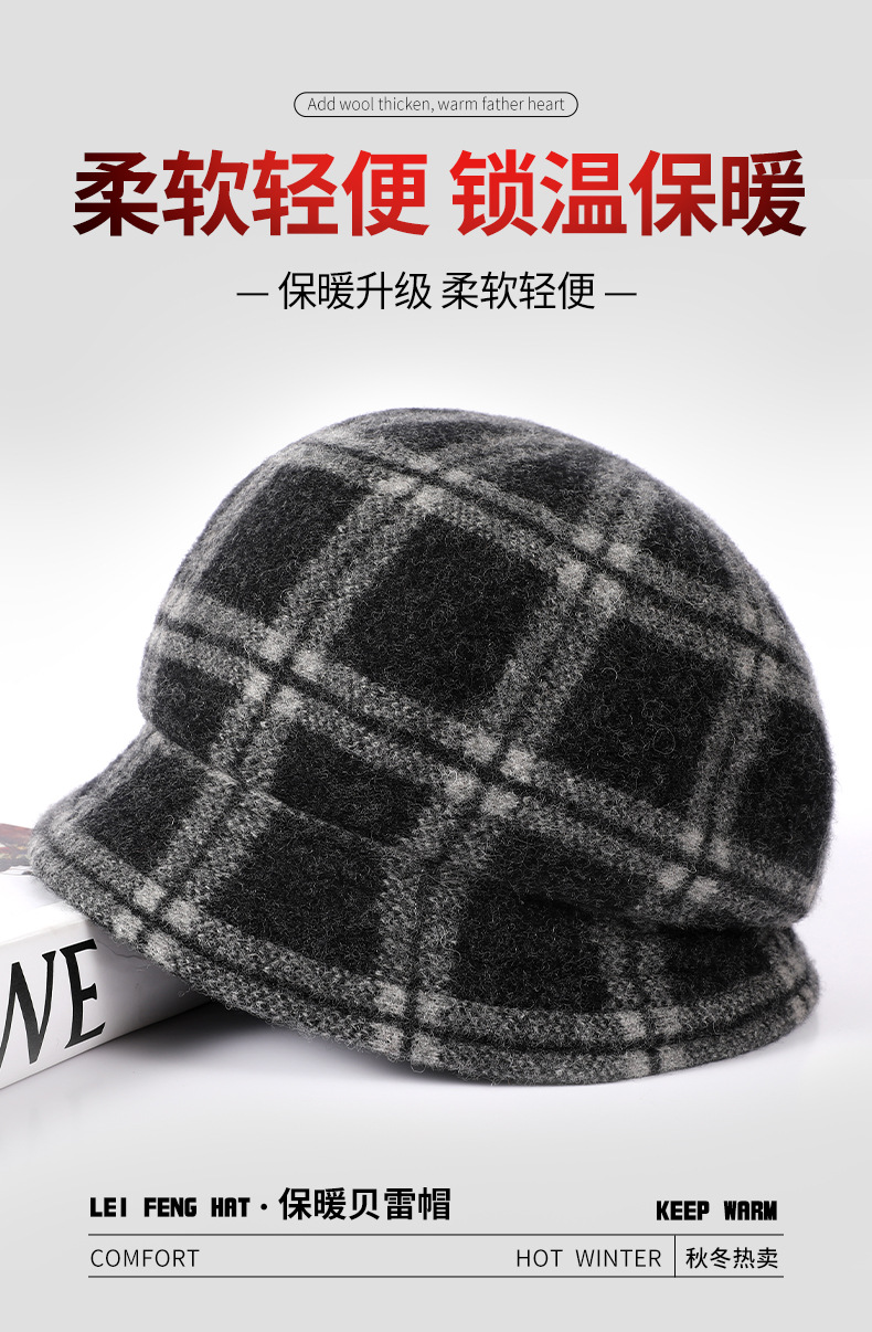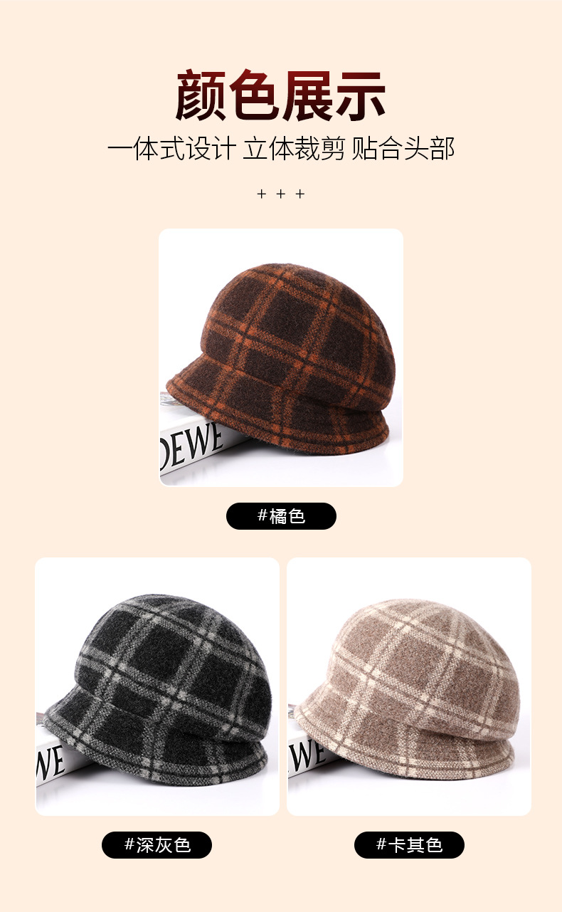 100% Quality Wool Basin Hat Women's Autumn-Winter Vintage Beret Checked Octagon Hat Warm Fisherman's Hat
