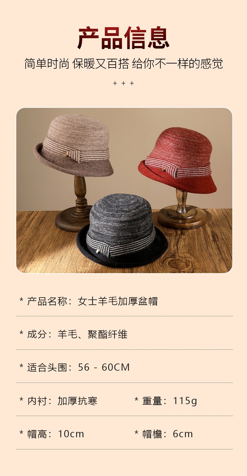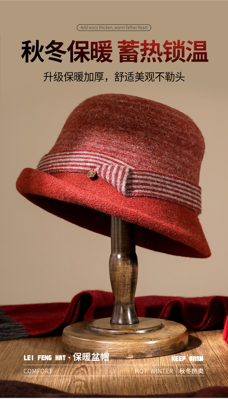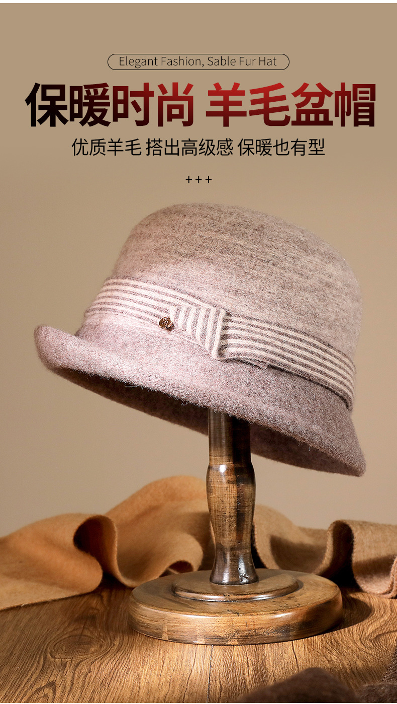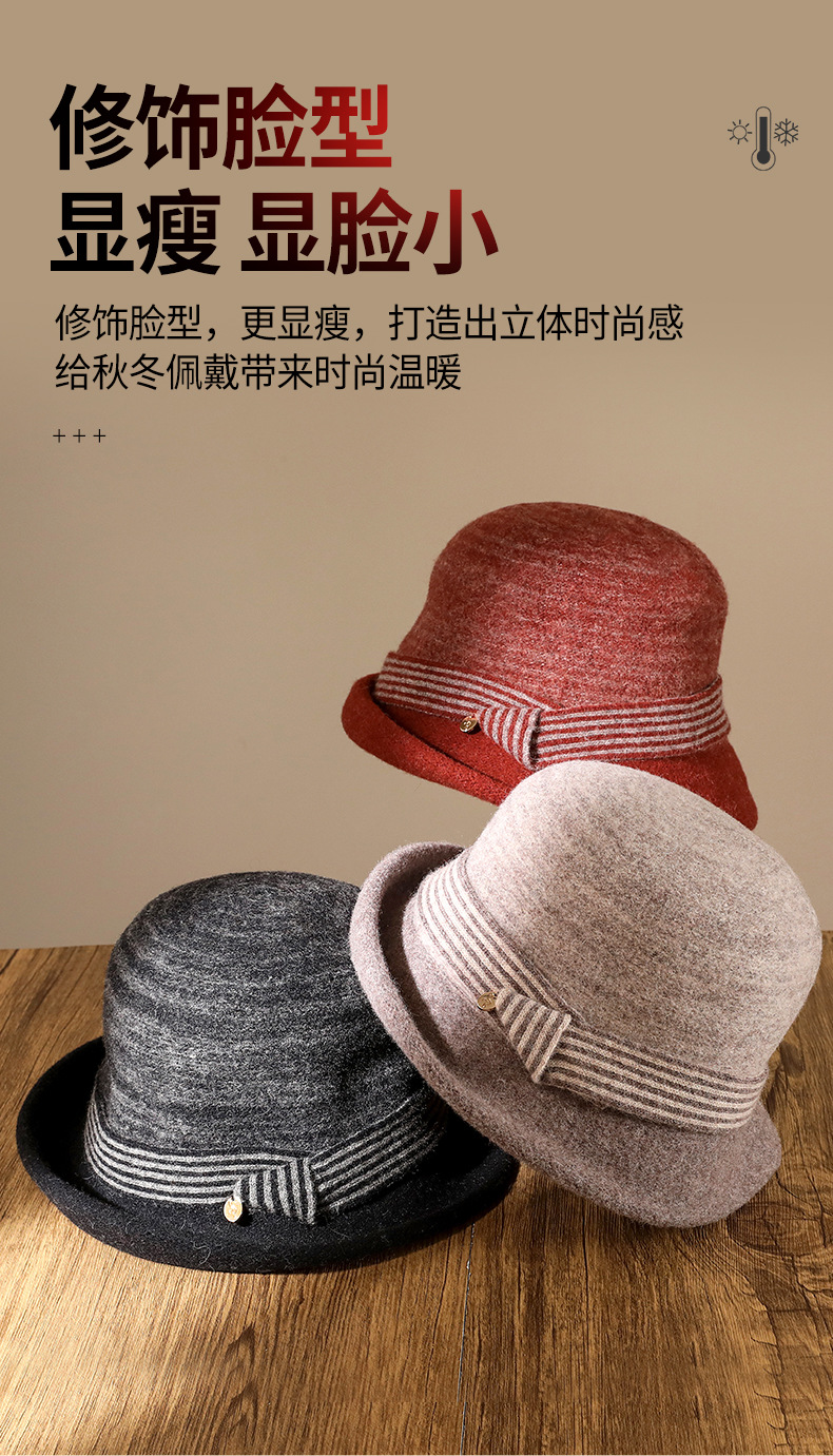 Autumn And Winter Knitted Wool Basin Hat With Rolled Edge Against Color Striped Women's Retro Casual Warm Top Hat Elegant Fisherman's Hat