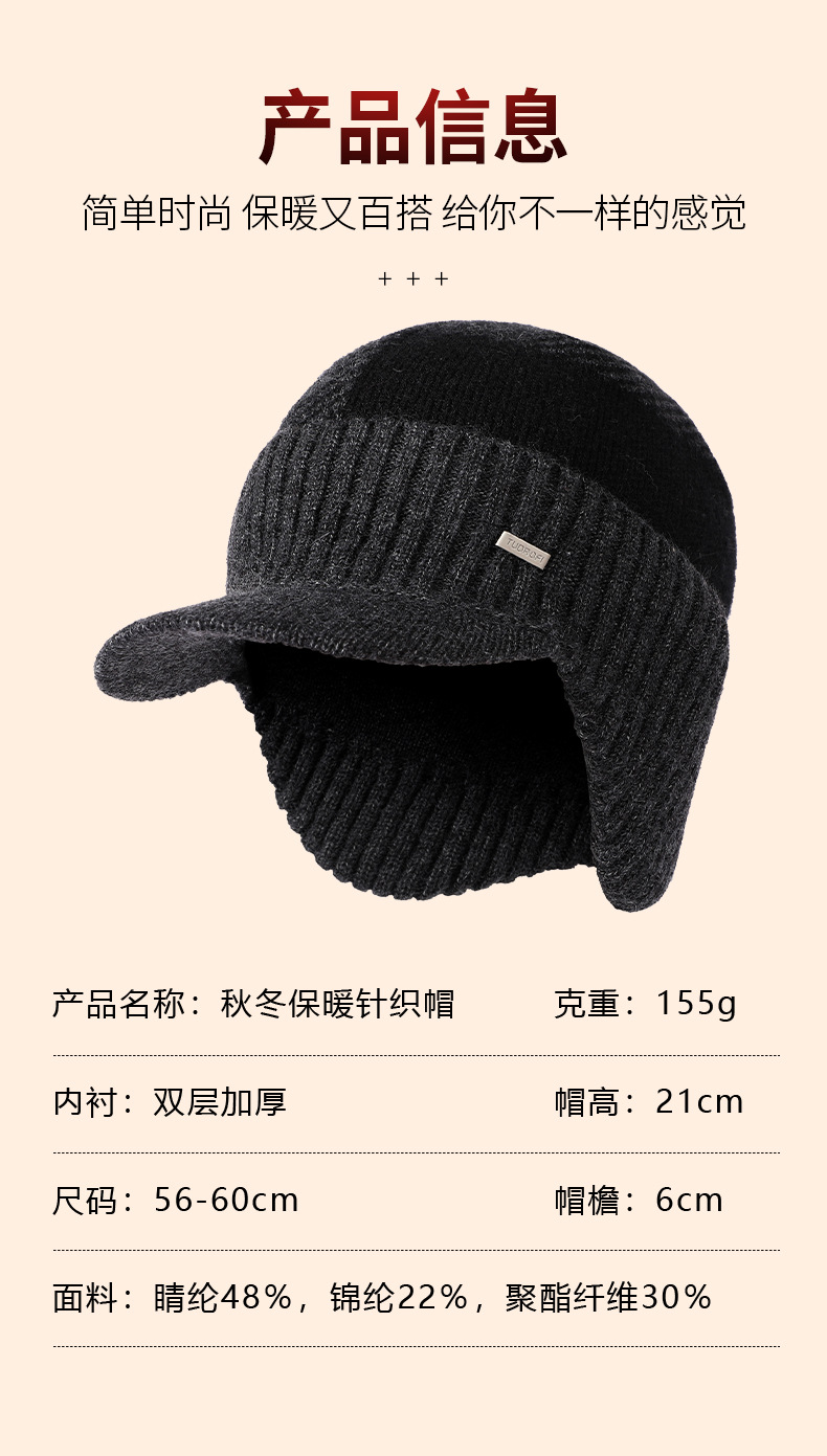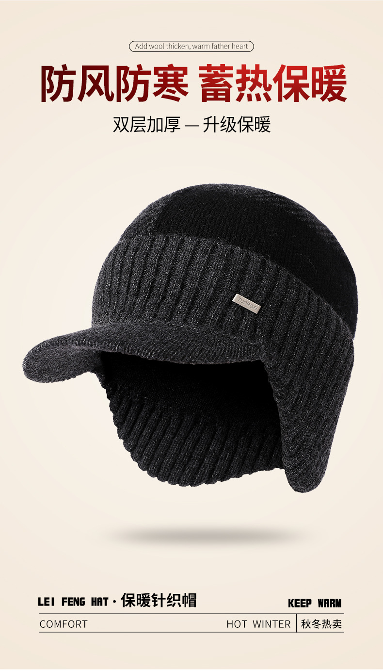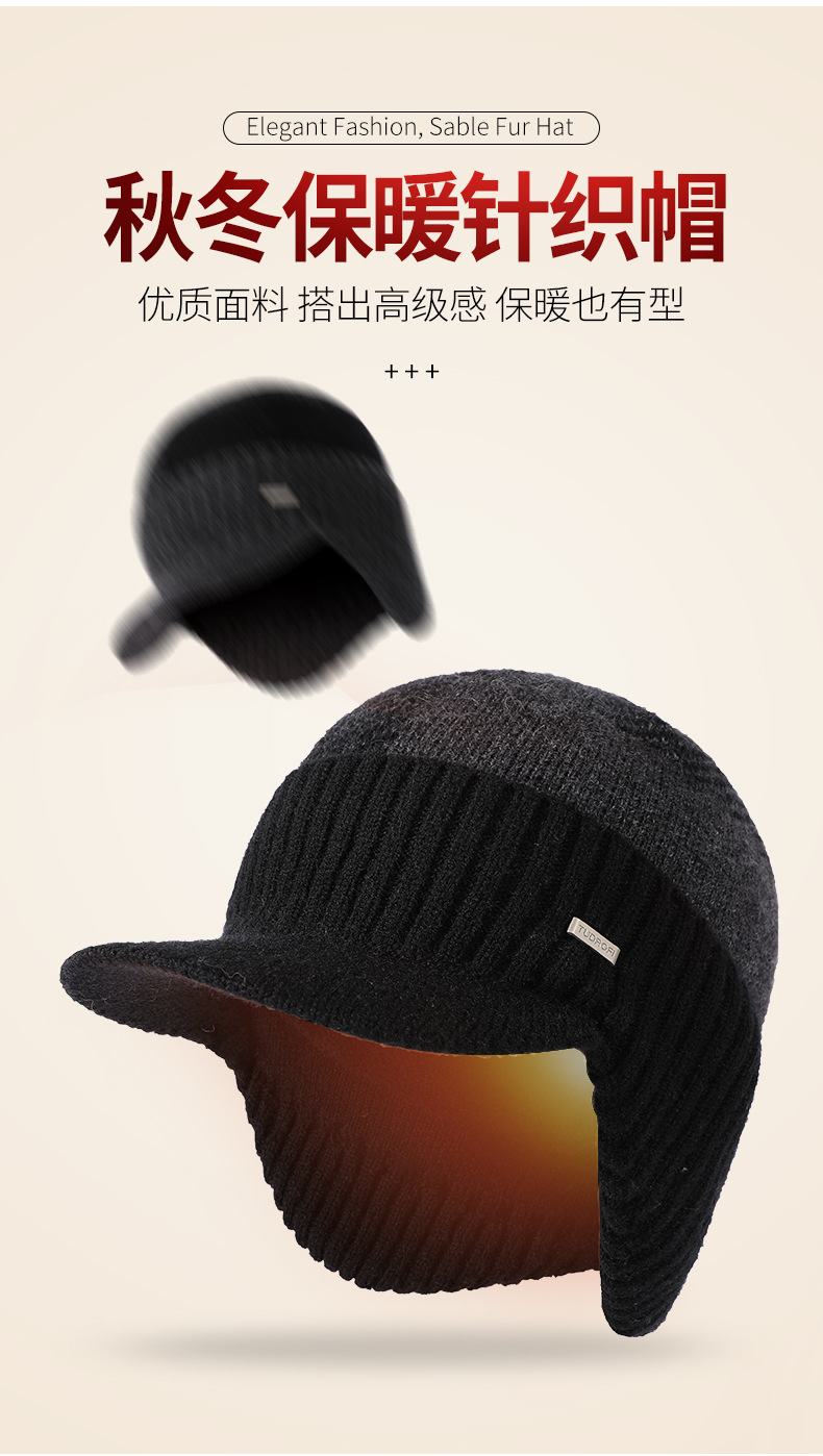 Autumn And Winter Outdoor Woolen Hat Europe And The United States Men's Warm And Fleece Thickened Cap Ear-Protection Knitted Hat Amazon