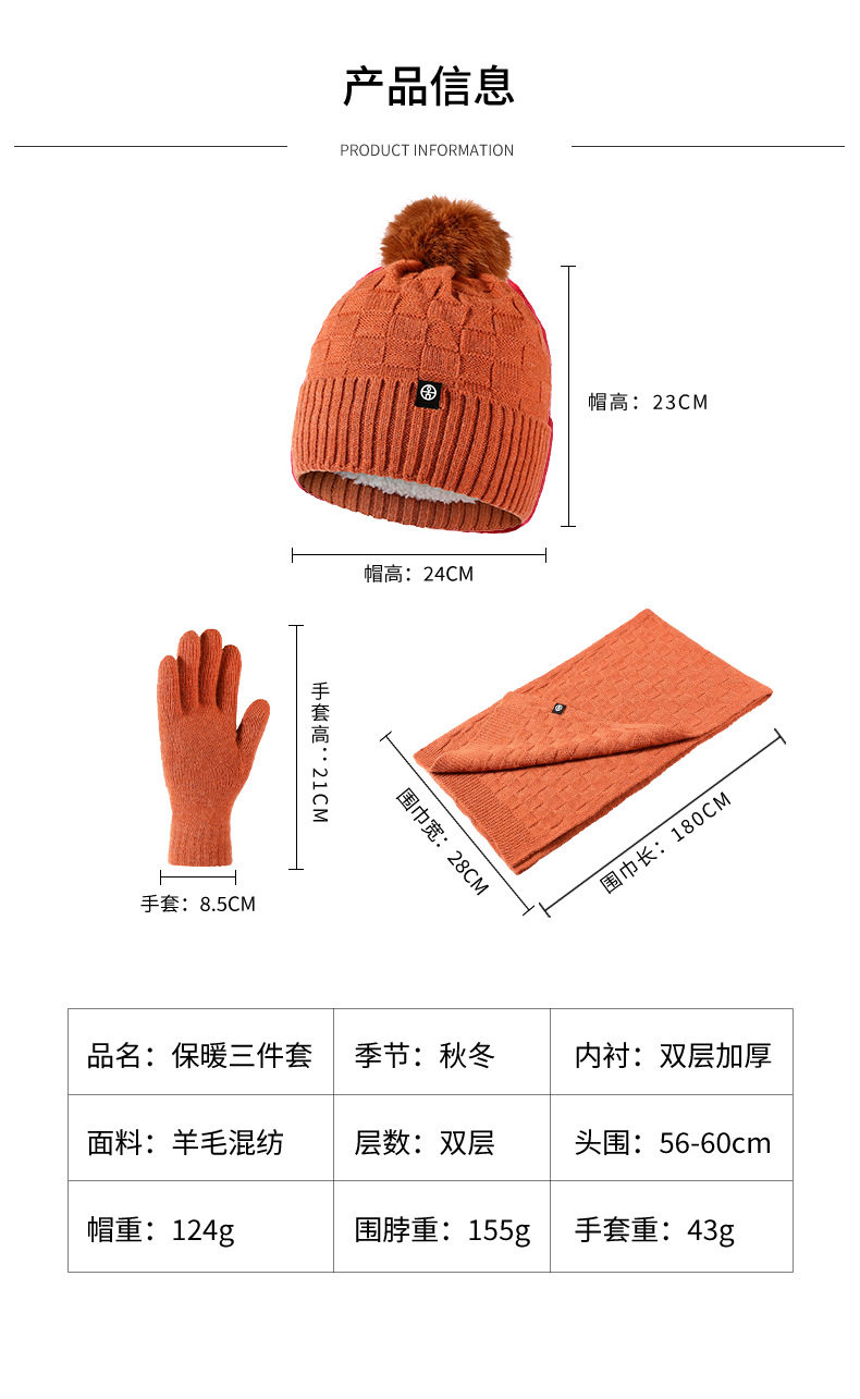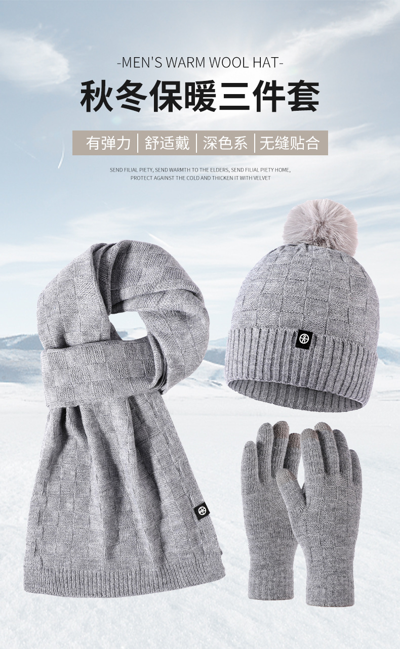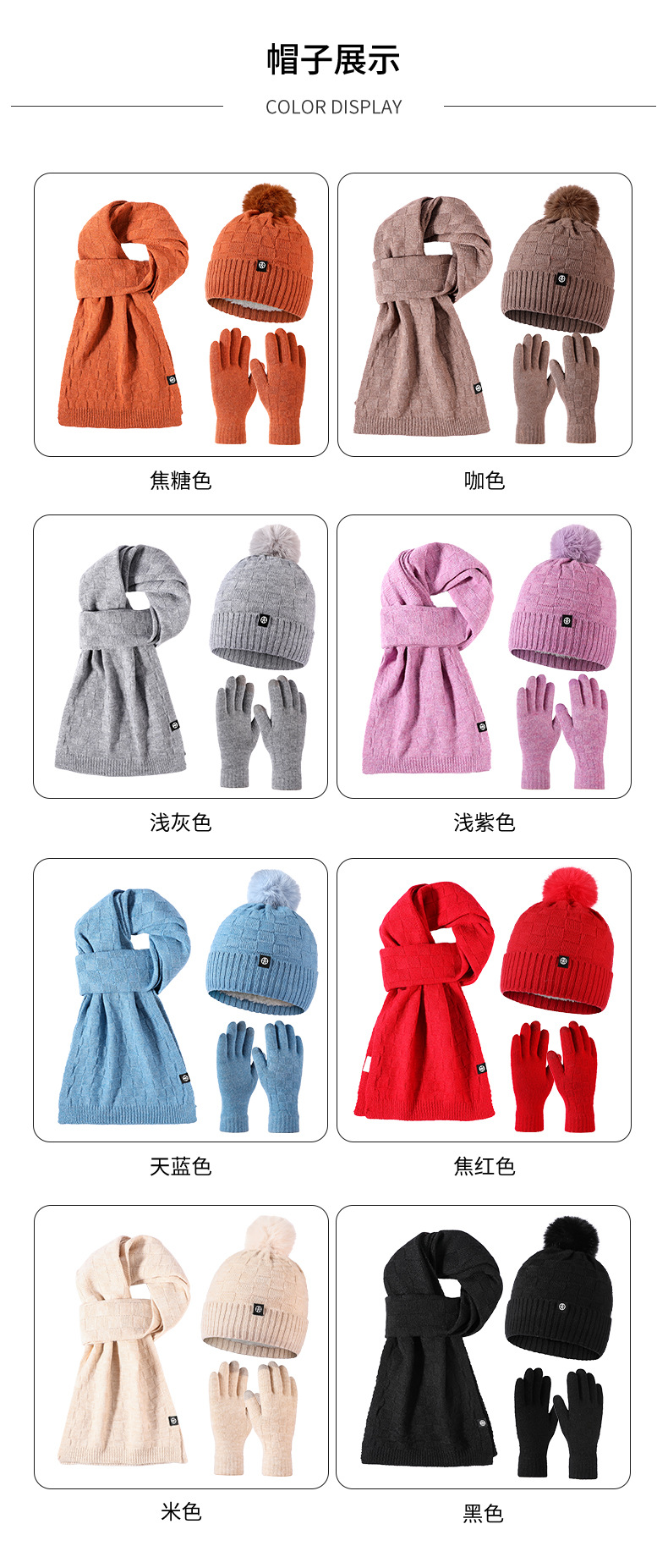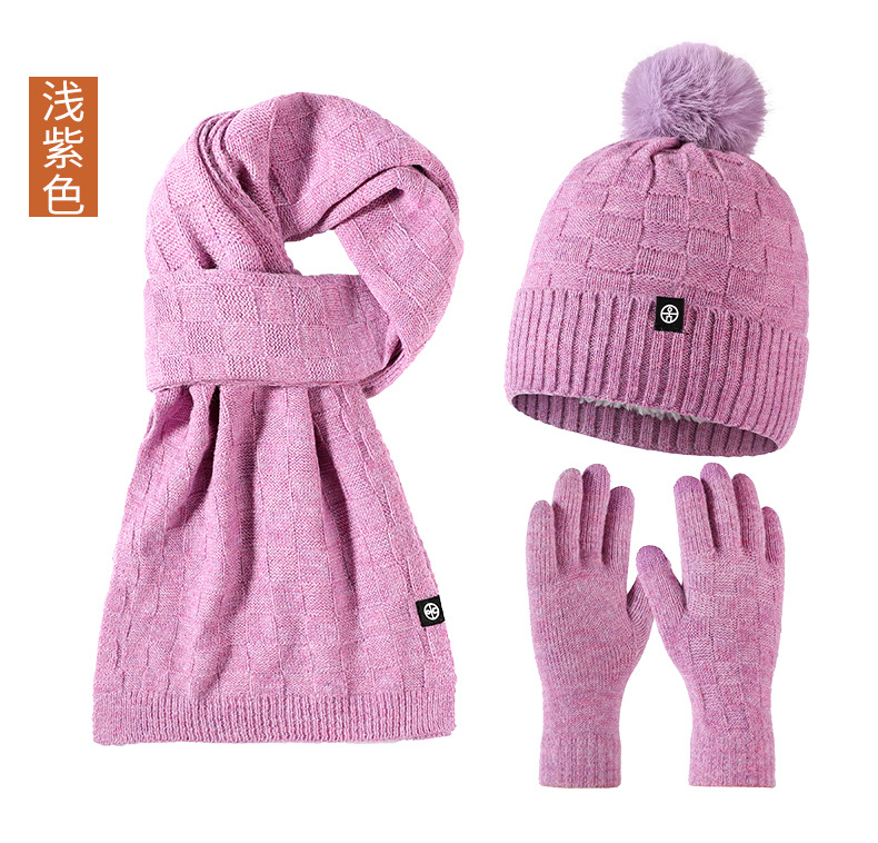 Cross-Border Foreign Trade High-Grade Wool Knitted Hat Scarf Gloves Warm Plaid Three-Piece Set Autumn And Winter
