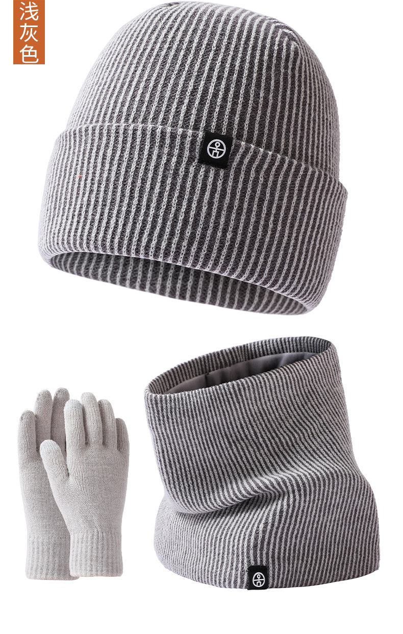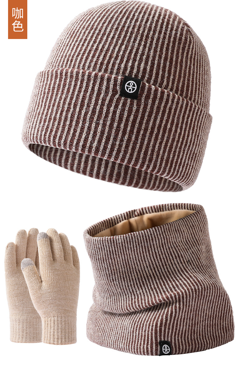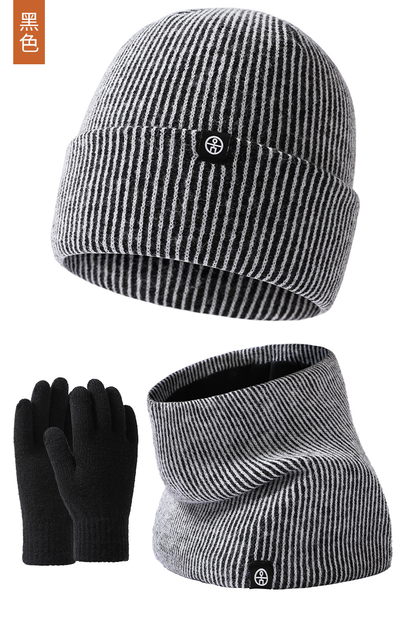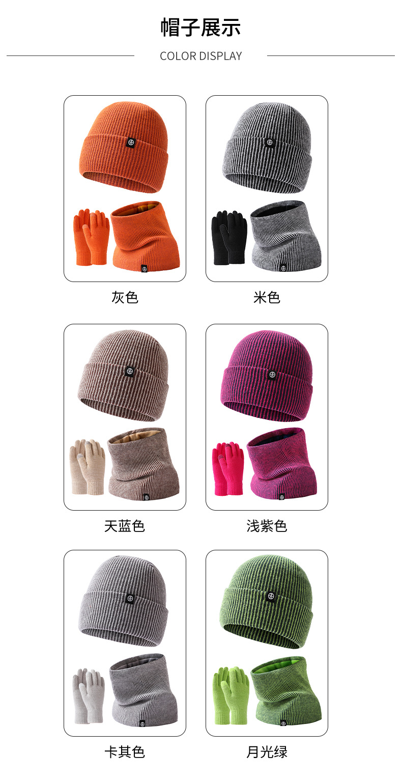 Cross-Border Warm Europe And The United States Knitted Hat Set Men And Women Double-Layer Cold Plus Velvet Hat Collar Gloves Three-Piece Winter Set