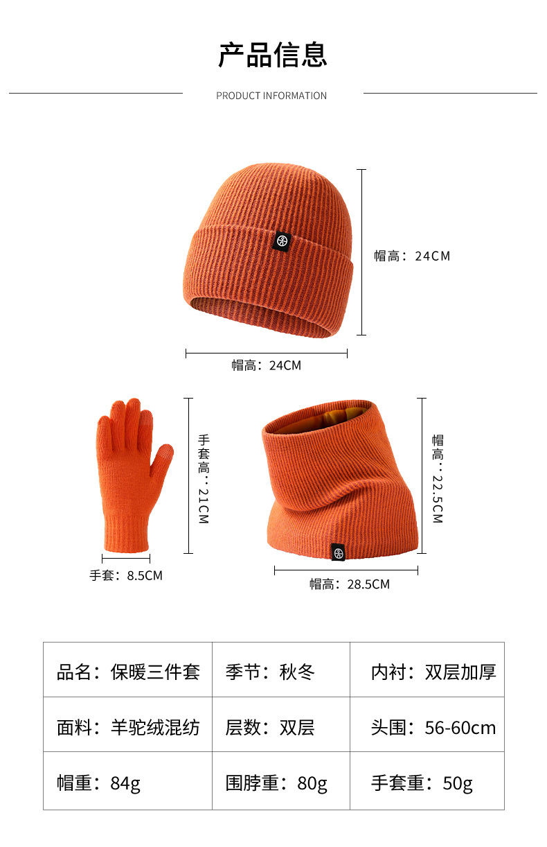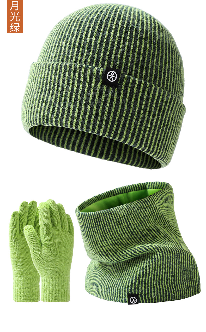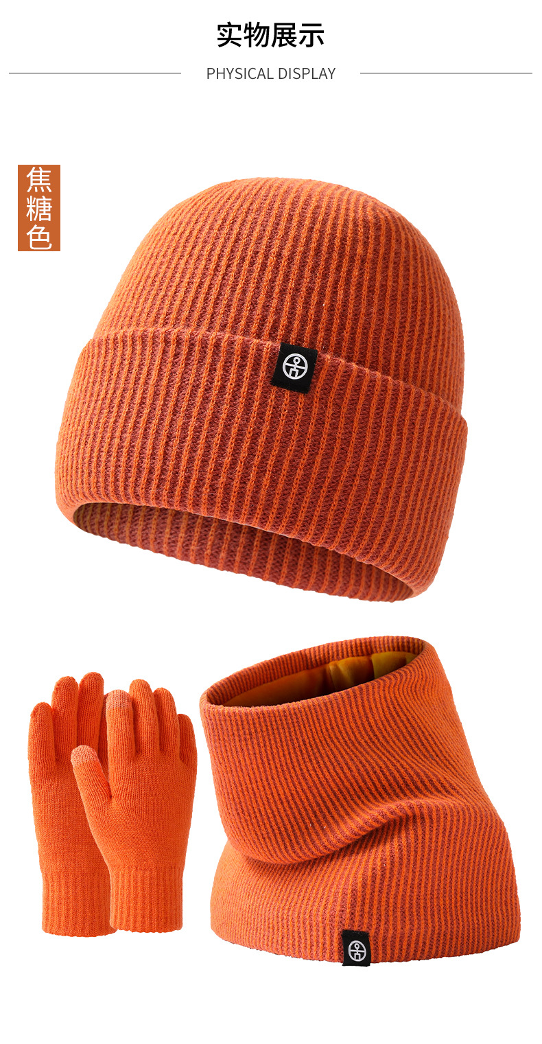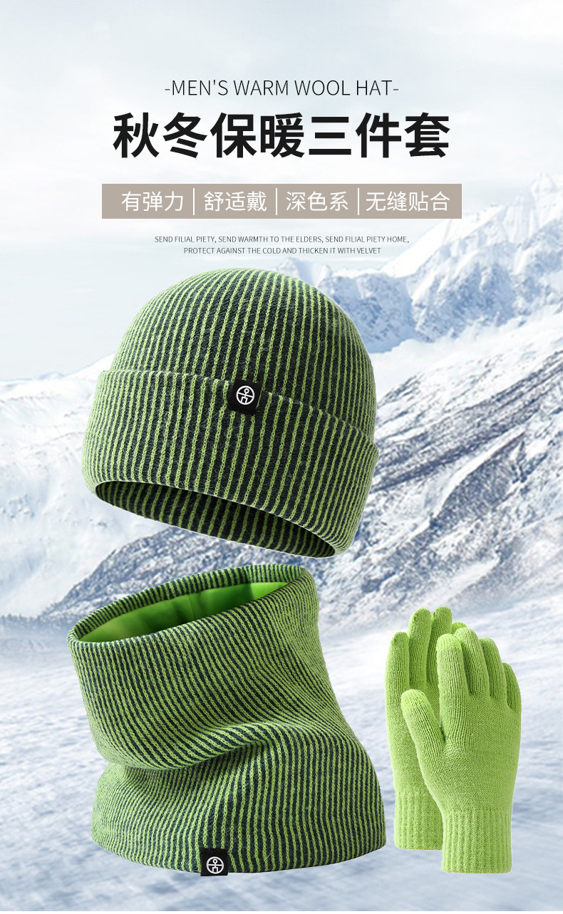 Cross-Border Warm Europe And The United States Knitted Hat Set Men And Women Double-Layer Cold Plus Velvet Hat Collar Gloves Three-Piece Winter Set