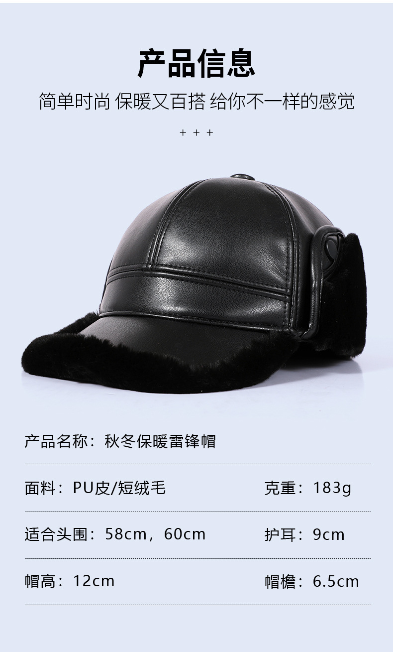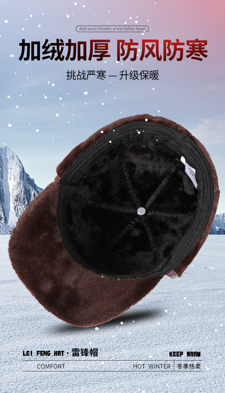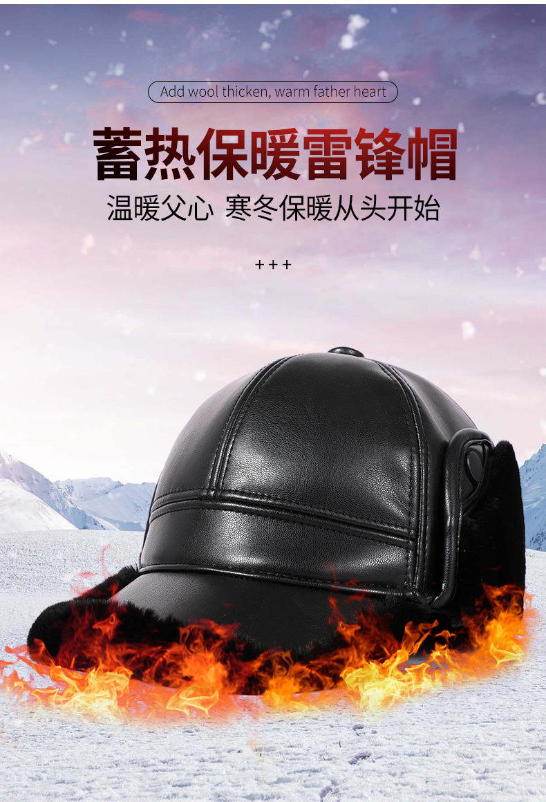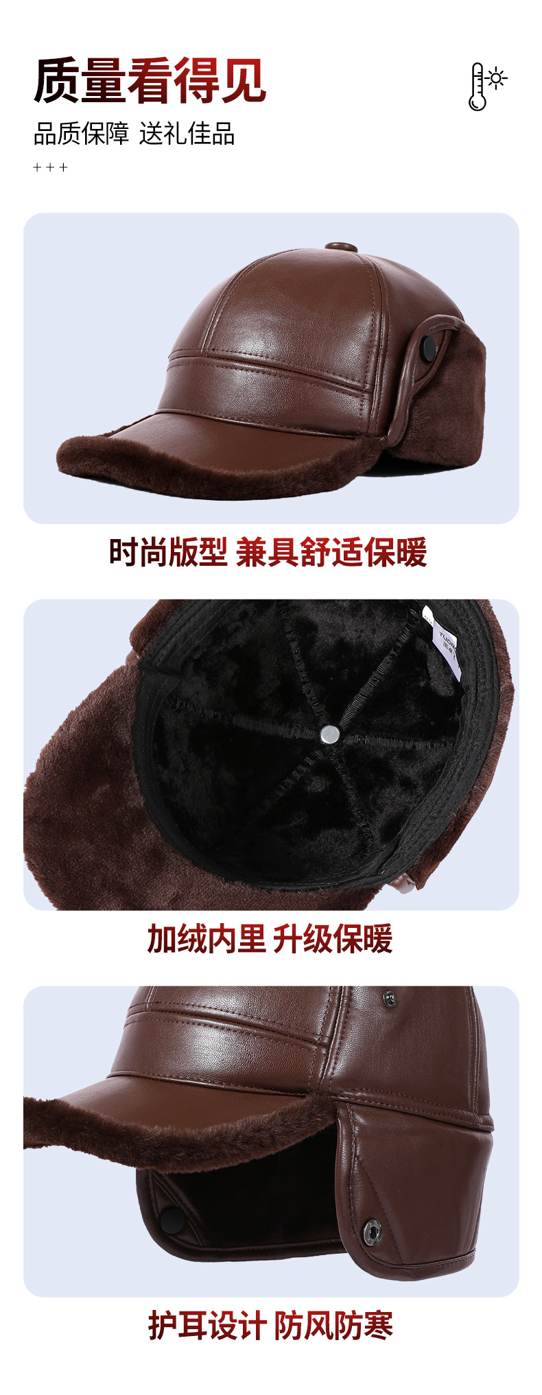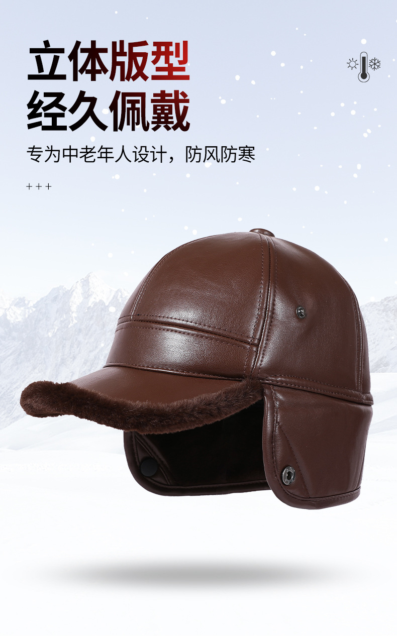 Middle-Aged And Elderly Pu Hat Male Winter Grandpa Warm Lei Feng Hat Plus Velvet Thick Leather Hat Old Ear Cap