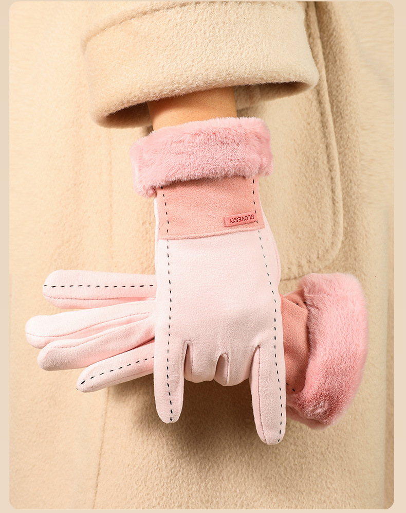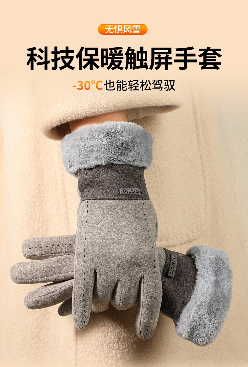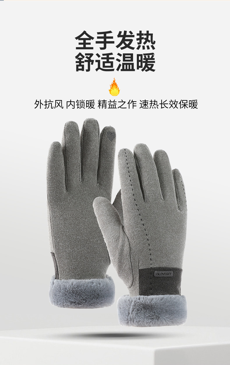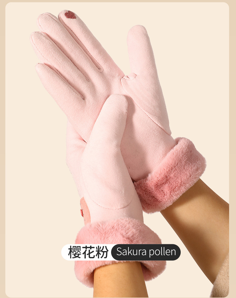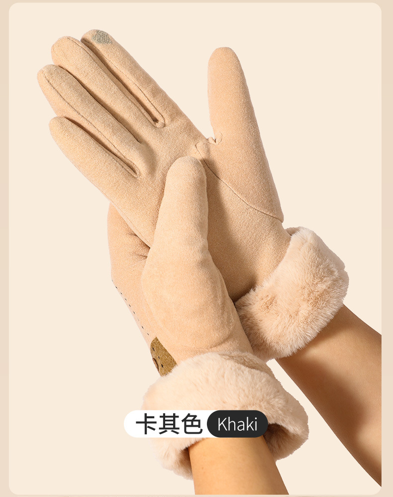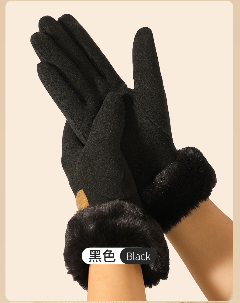 Warm Gloves Women's New Winter Can Touch Screen Plus Fleece Thick Gloves Winter Riding Cold And Warm Finger Gloves