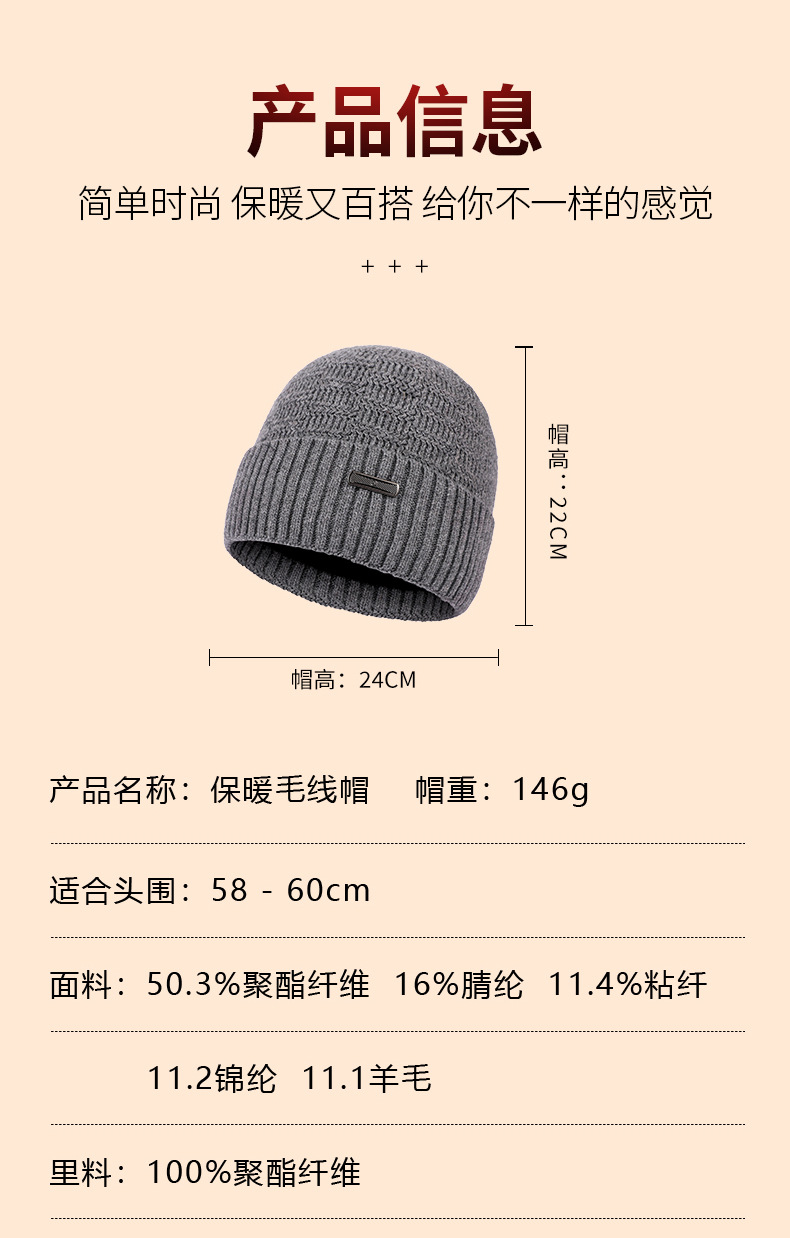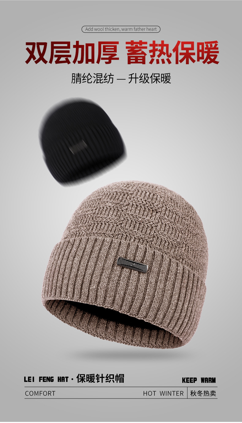 Winter Fleece Warm Wool-Blend Knitted Hat With Fleece Pullover Hat For Men And Women Outdoor Woolen Hat With Ear Protection